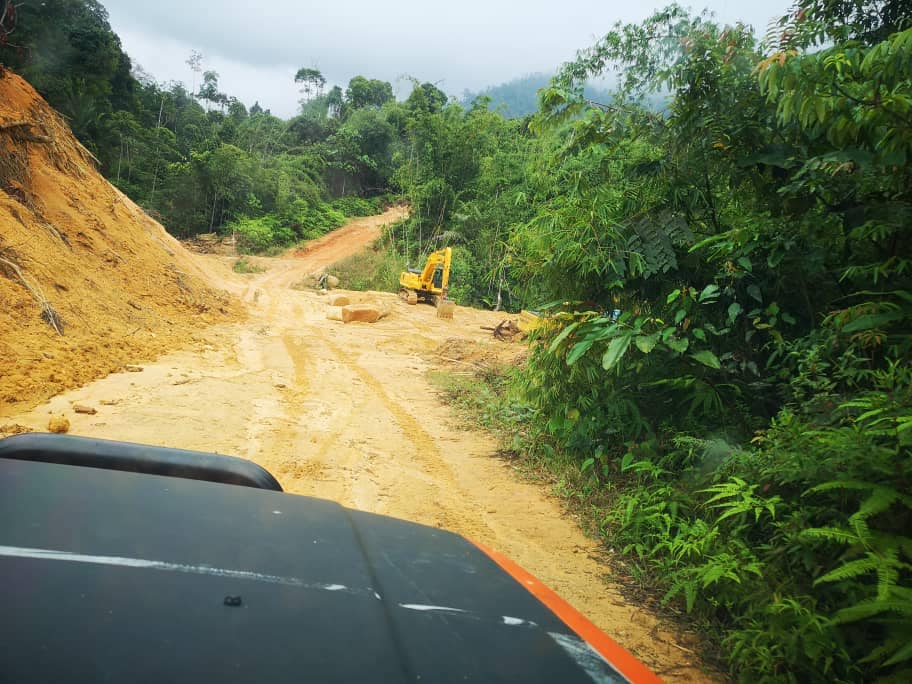 Selepas kira-kira satu jam perjalanan melalui jalan tanah merah, kami mula memasuki kawasan Hutan Simpan yang sudah ditebang balaknya beberapa tahun lalu (berdasarkan saiz pokok belukar muda yang tumbuh di kawasan berkenaan).