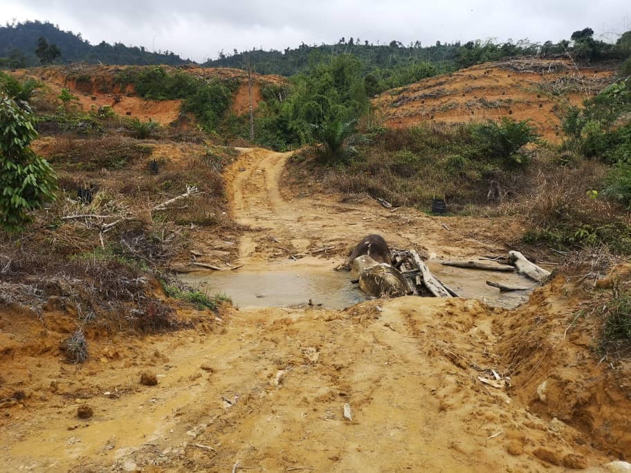Di kiri dan kanan jalan dipenuhi kebun getah dan kelapa sawit haram yang menurut Mr C sudah diteroka berpuluh tahun lalu dan tidak pernah “diganggu” kerana semuanya sudah “dikawtim.”