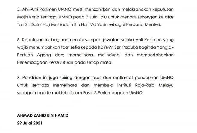 Disamping itu Datuk Seri Zahid Hamidi meminta semua ahli parlimen UMNO menarik sokongan terhadap Perdana Menteri (BACA DI BAWAH)