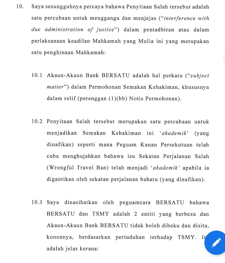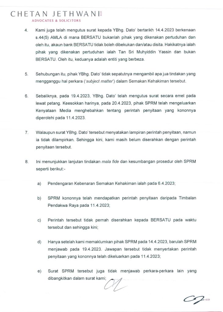 Lihat surat peguam BERSATU dan afidavit yang difailkan di mahkamah.