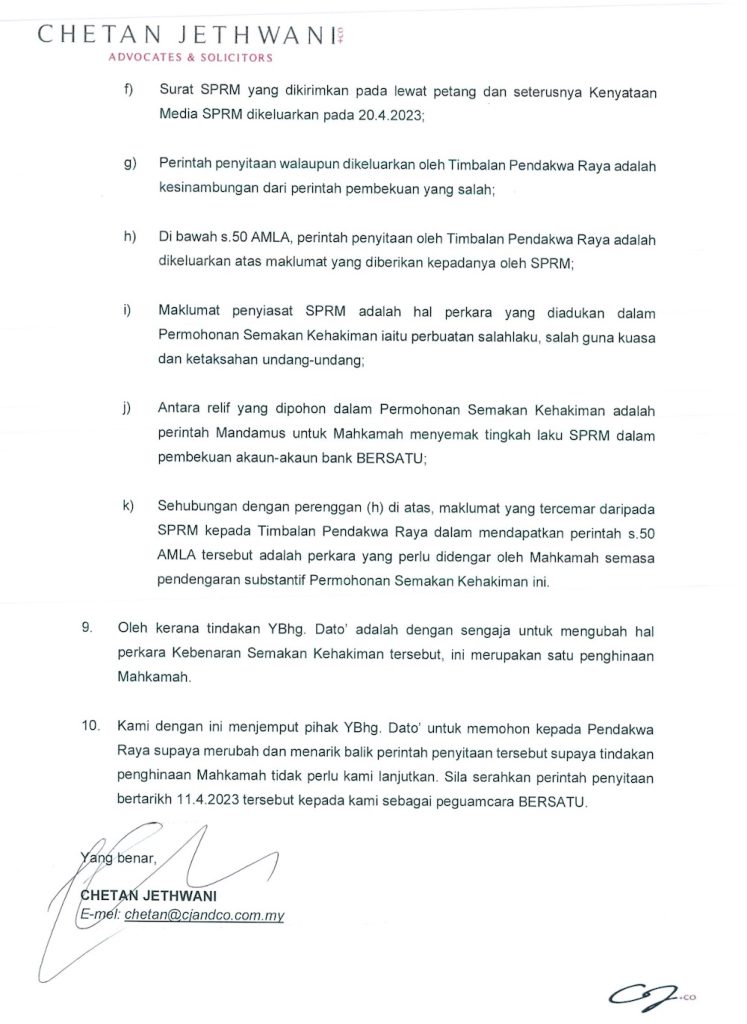Malah, SPRM secara terang-terangan mengakui bahawa mereka telah merampas akaun BERSATU pada 11.4.2023 sedangkan perintah pembekuan telah tamat pada 12 Mei!